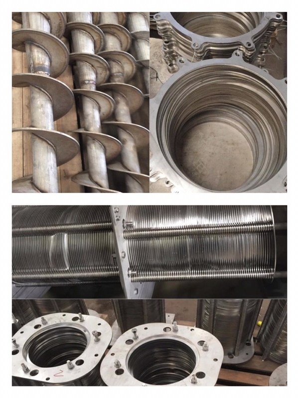 Отработанные воды вводятся в обезвоживающую машину. Под давлением спиральных лопастей шлаки перемещаются к выходу отстойника.Потому что разрыв между спиральными лезвиями становится теснееВода выходит из пространства между фиксированными и движущимися пластинами.